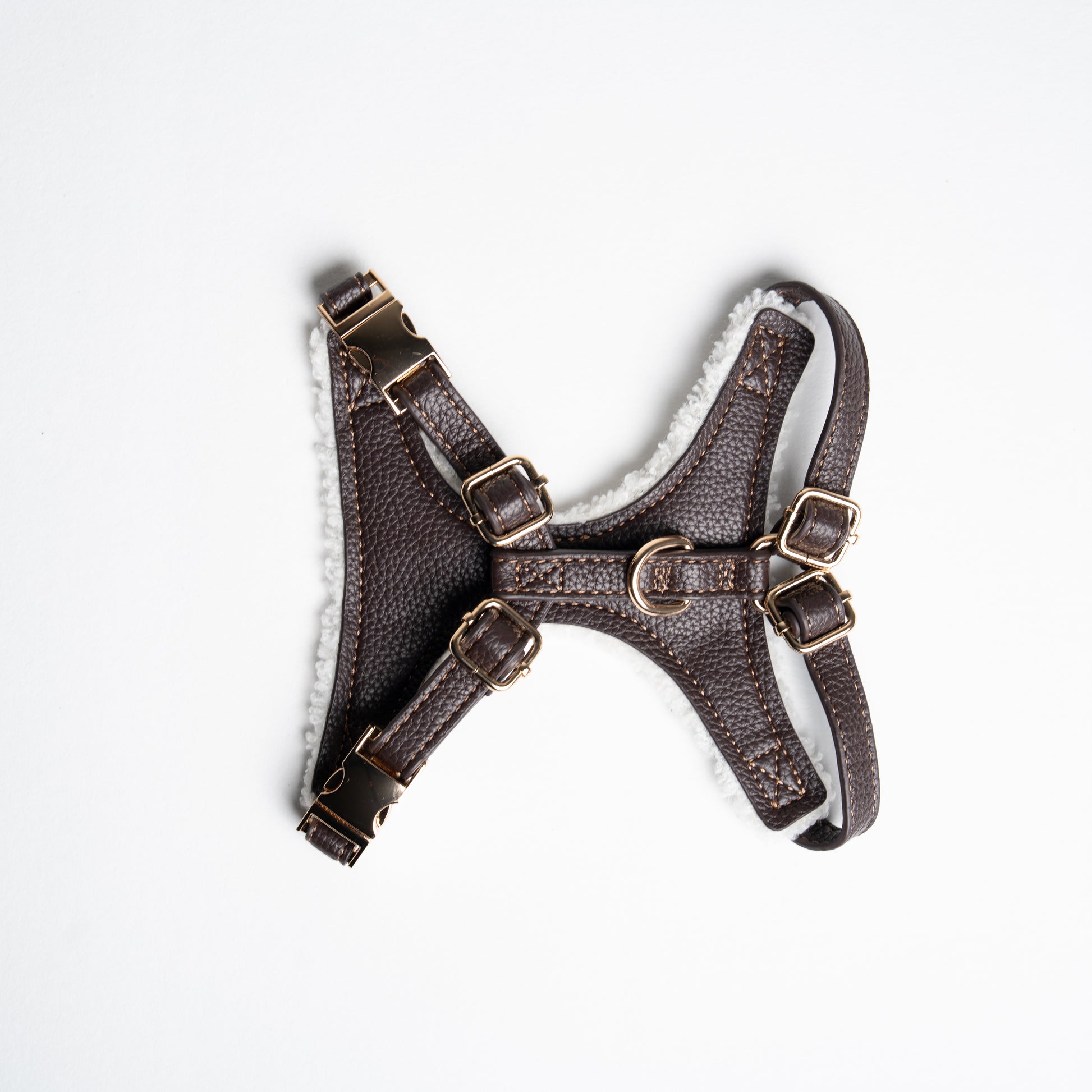 Where comfort meets elegance. This harness combines soft teddy texture with premium PU leather for a timeless, luxurious look. Designed to fit securely while keeping your Furry Bebé comfortable on every walk.
